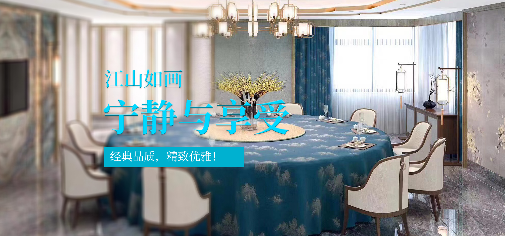 主打產(chǎn)品——臺布、椅子套、桌布、餐桌用品等一系列酒店專用